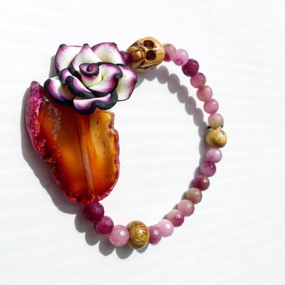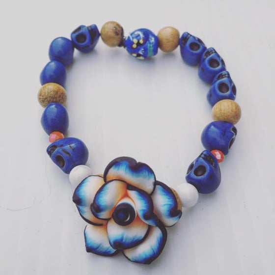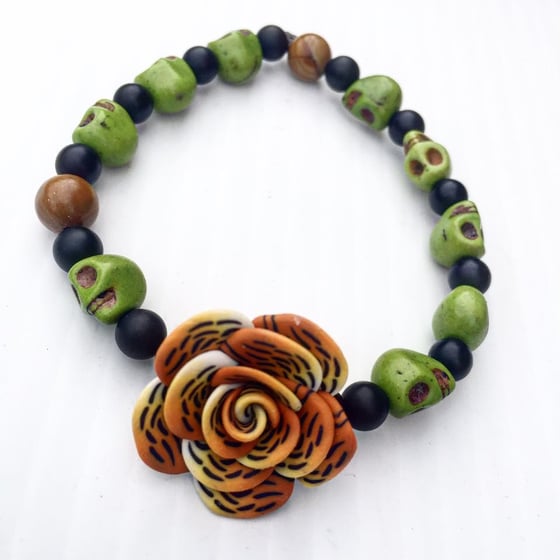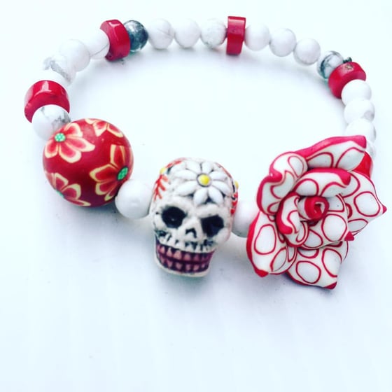 Dia De Los Muertos~ Howlite Skull Bracelet with wood