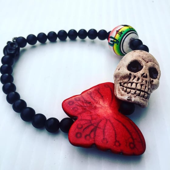 Dia De Los Muertos~ Butterfly Skull Bracelet, Howlite and Onyx and Hand Painted Bead
