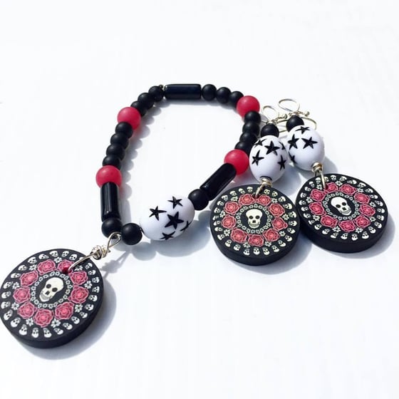Sacred Heart Day of Dead Dalmatian Jasper and agate necklace