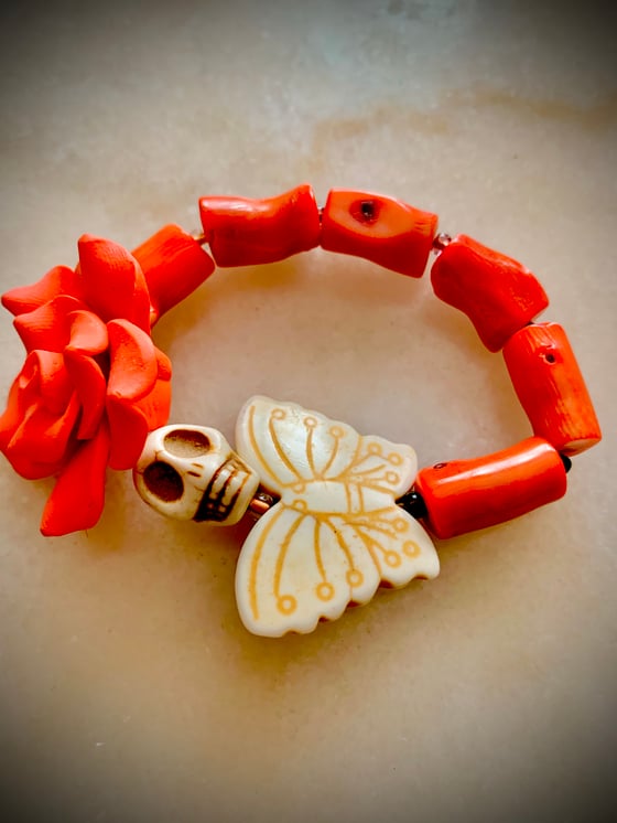 Day of Dead Peach Coral and Howlite Skull and butterfly