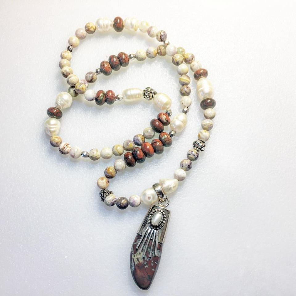 BEAUTIFUL Custom Sterling Silver with Brecciate Jasper, Chrysanthemum and Pearl <3